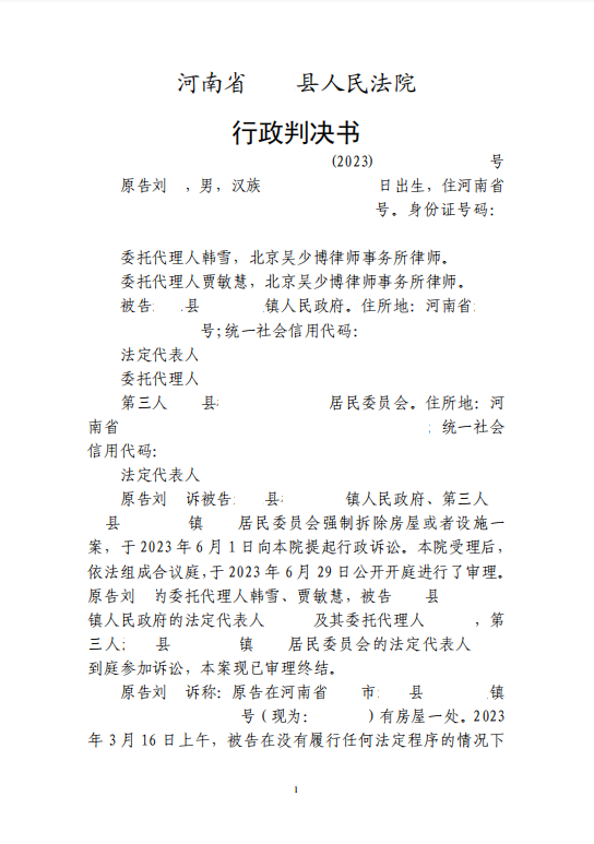 本案代理律師 北京吳少博律師事務所 賈敏慧 韓雪 前言: 自建房可以強拆嗎?在我國存在的自