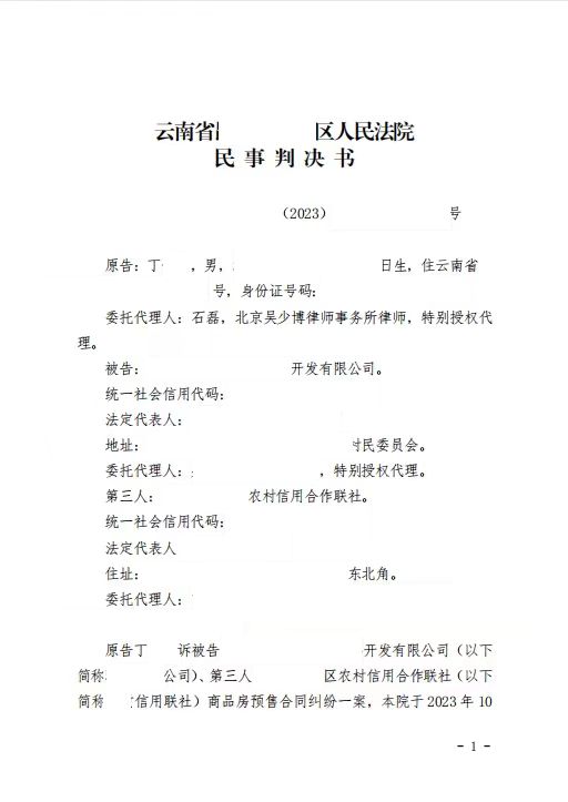 本案代理律師 北京吳少博律師事務所 石磊 案情簡介: 2021年年初,丁某等三人繳納大筆首付款